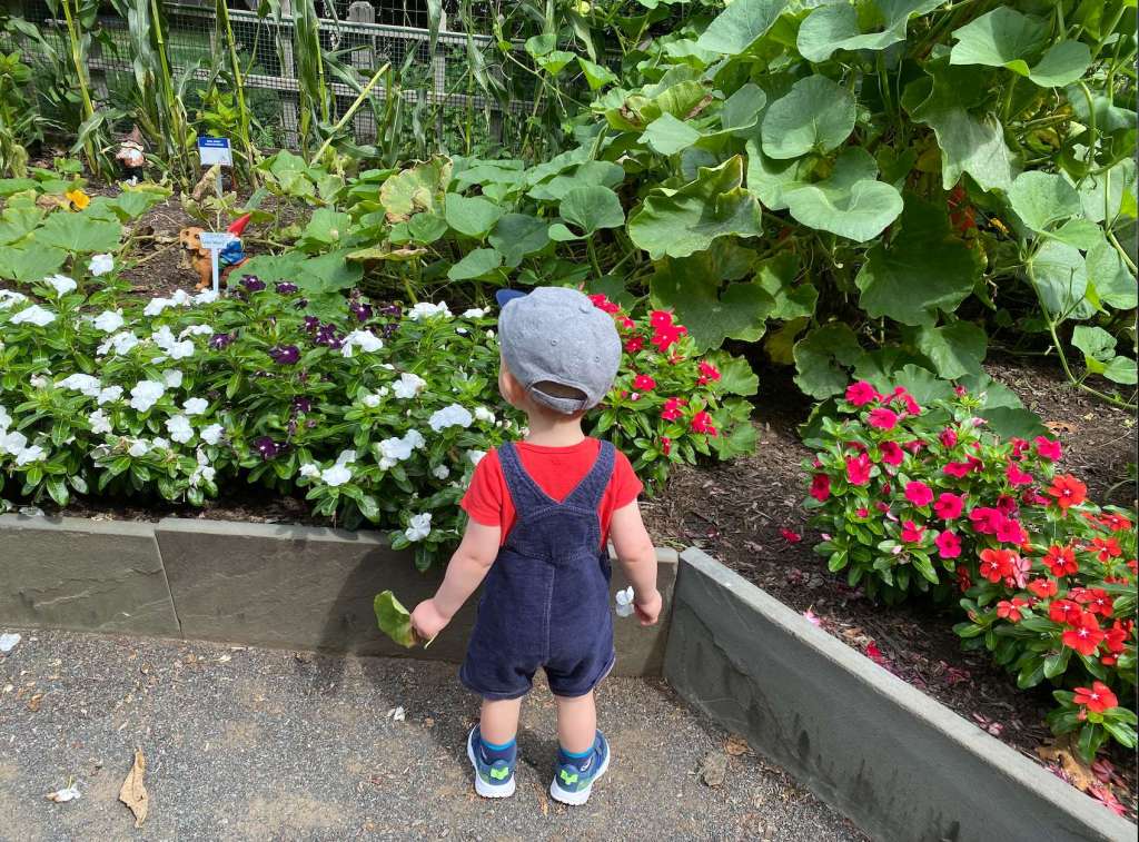 Greeted by a cute sign asking us to close the gate to keep the bunnies out, our little guys were off exploring the plants and flowers when they spotted their first garden gnome, and then to our delight we realized there were several hidden throughout. Think South Mountain Fairy Trail type attraction, but less crowded, stroller-friendly, and minus the poison ivy and cliffs. Winning. Our boys were gleefully on the hunt for gnomes, and while this portion of the garden is the smallest, they could have stayed here all day.